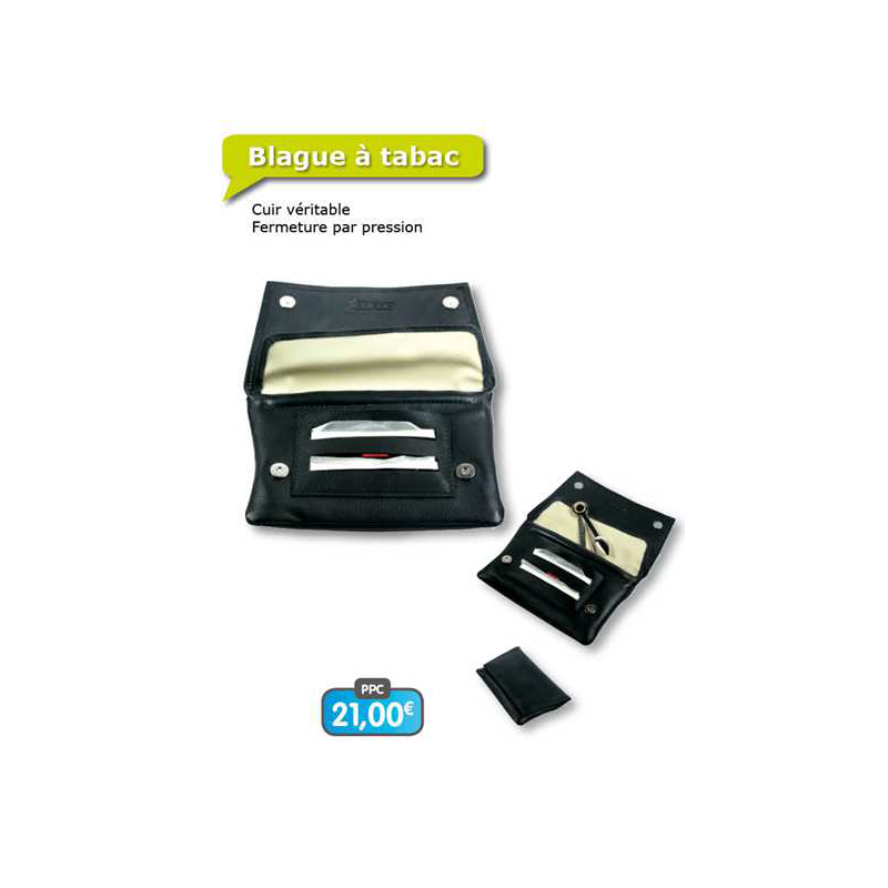 Blague à tabac cuir noir ou camel fermeture pression