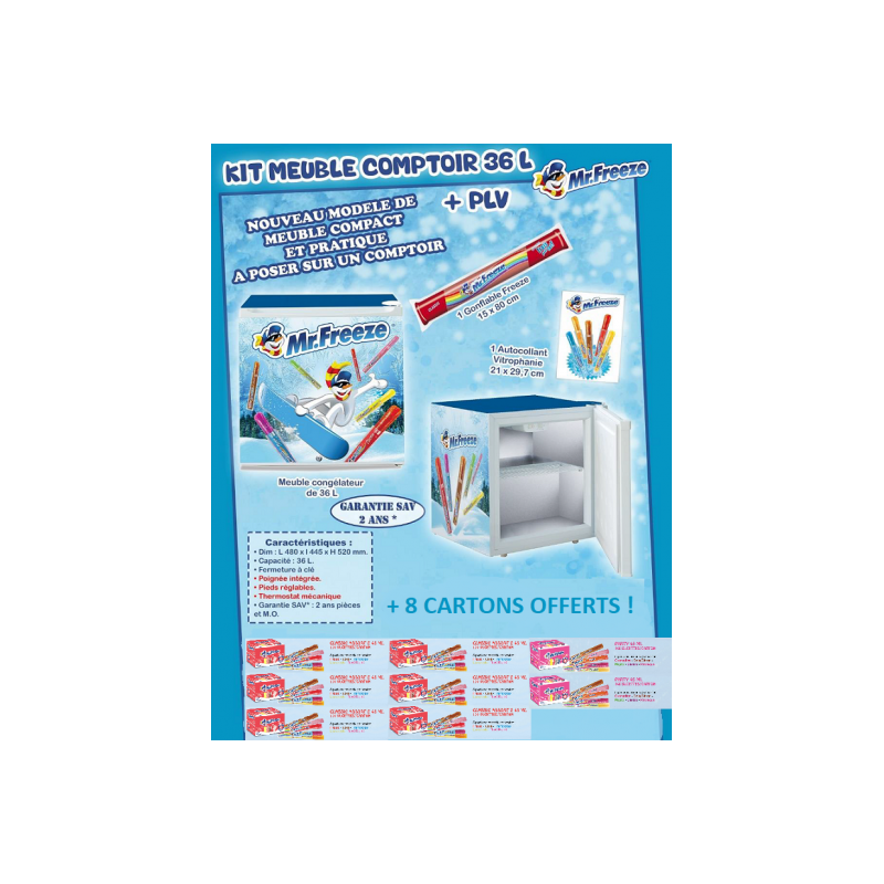 Congel Mister Freeze COMPTOIR 36L + 8 cartons 140 Mister Freeze offerts